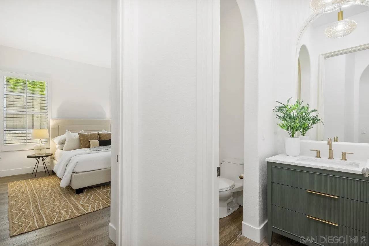 Welcome to 11649 Thistle Hill, nestled in the exclusive gated community of Torrey Woods Estates. This exceptional home offers the unique advantage of choice between two top-rated elementary schools: Ocean Air or Torrey Hills. Gated courtyard entry invites you into a freshly painted home with designer finishes. Grand formal entry with cathedral ceilings open to the elegant formal living and dining rooms with dual-sided fireplace. New luxury vinyl plank flooring, custom lighting, and an abundance of natural light throughout. The chef's kitchen is a true showstopper, featuring an oversized island with prep sink, pendant lighting, Quartz countertops, a spacious eat-in area, walk-in pantry, built-in desk, premium Viking appliances including a 6-burner cooktop with hood and professional-grade refrigerator—all seamlessly flowing into the family room with fireplace.